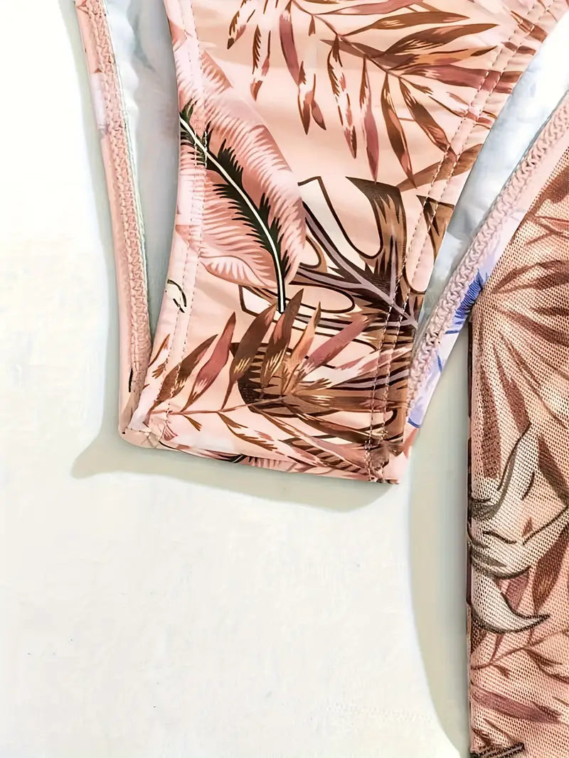 Ensemble Bikini 3 Pièces Floral – Soutien-Gorge Twist, Bas Taille Haute & Kimono Tropical