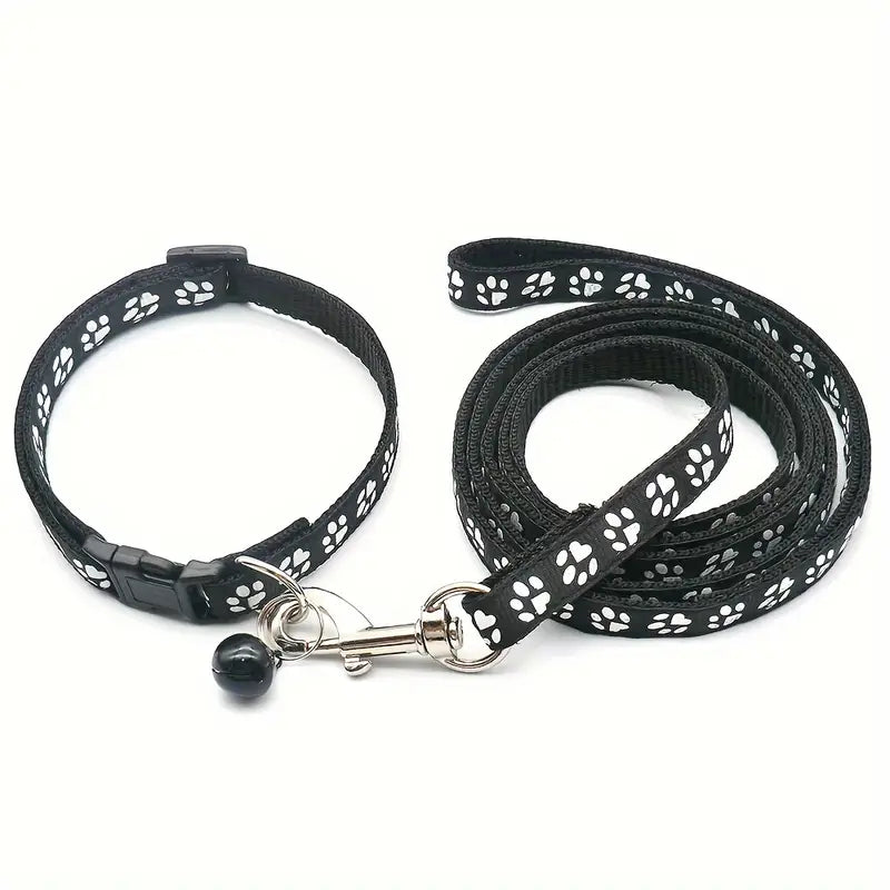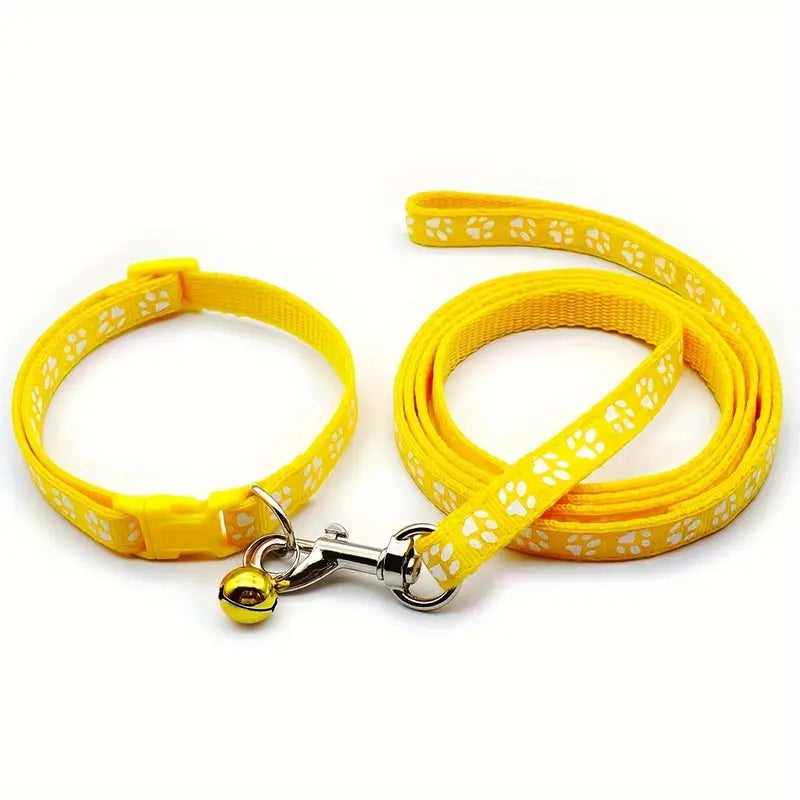 Ensemble Collier et Laisse pour Chat – Réglable avec Clochette, Motif Patte, Multicolore