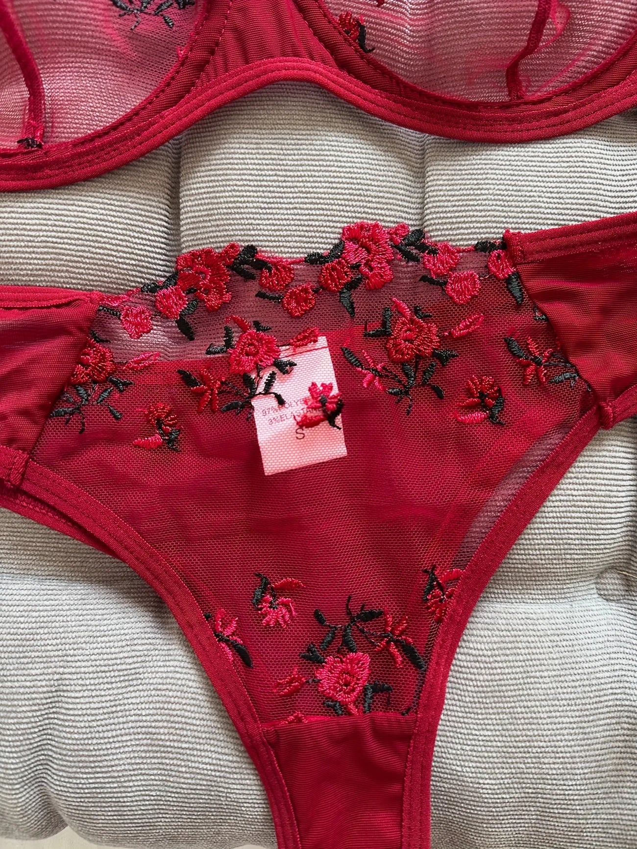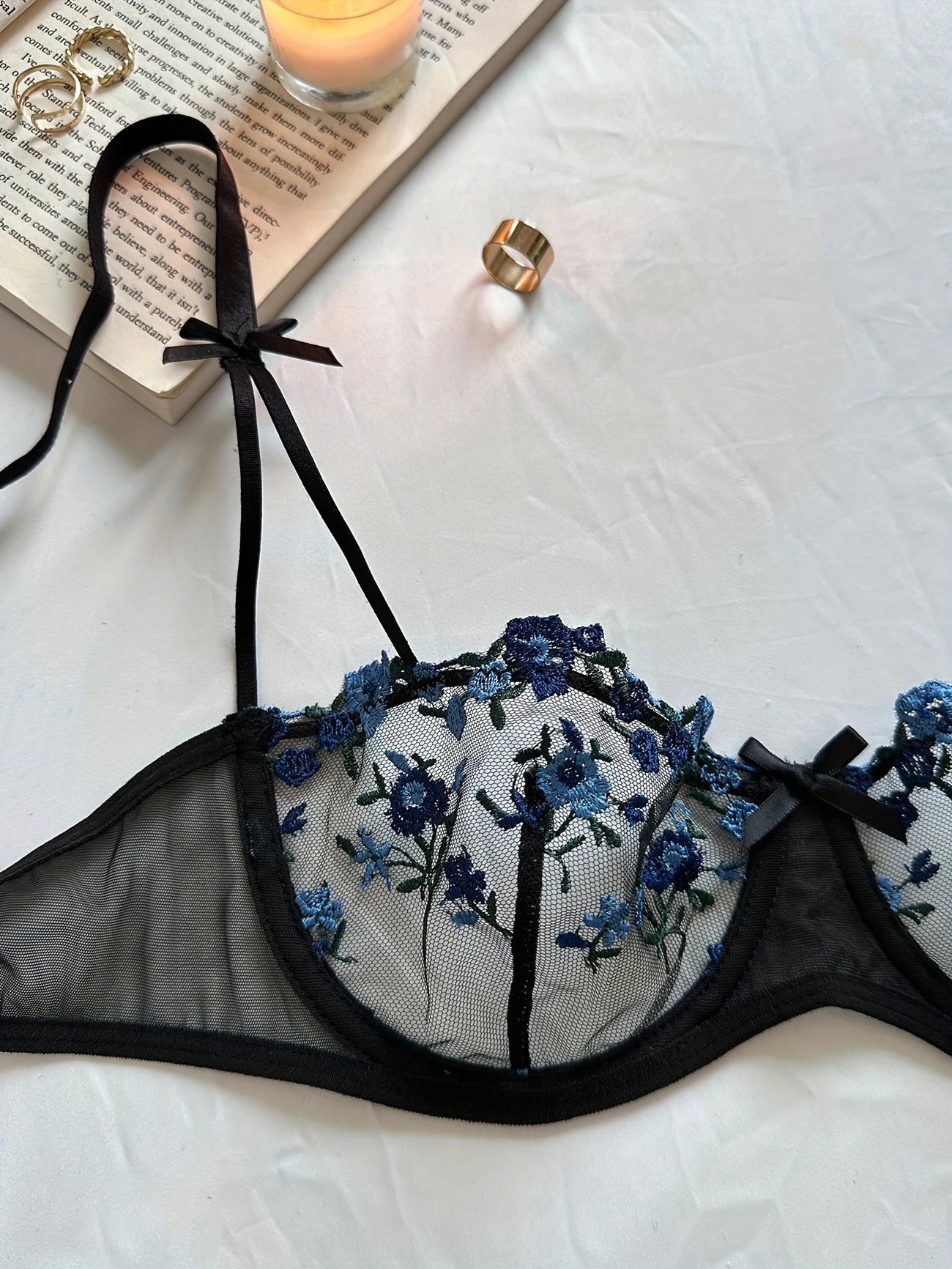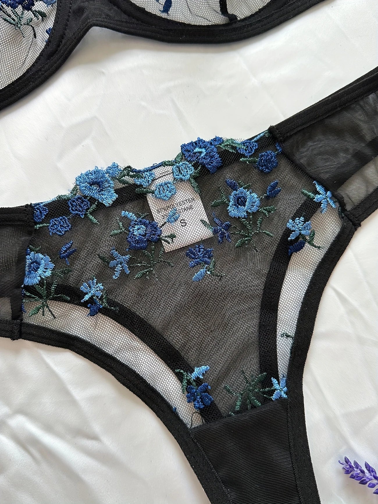 Ensemble Lingerie Sexy Femme en Dentelle Transparente – Soutien-Gorge à Armatures et Tanga Fleurs Brodées