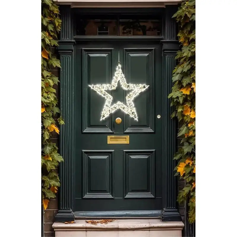 Créez instantanément une ambiance cocooning avec notre Étoile lumineuse LED suspendue. Son design à double contour révèle une profondeur élégante, tandis que les micro-LED diffusent une lueur douce et homogène. Légère et prête à accrocher grâce à son anneau discret, cette décoration murale lumineuse sublime fenêtre, cheminée, mur ou console en un clin d’œil.