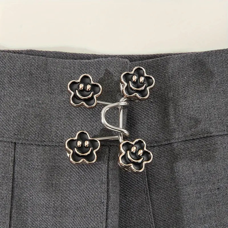 Offrez-vous un souffle d’aisance quand votre pantalon serre. Ce clip se fixe de part et d’autre de la ceinture et relie les bords par un crochet, créant une ouverture maîtrisée à la place du bouton. Discret, décoratif et robuste, il transforme un besoin pratique en atout style, sans abîmer le tissu.