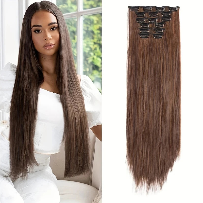 Extensions Cheveux Lisses à 16 Clip – Longueur et Volume Naturel Instantané