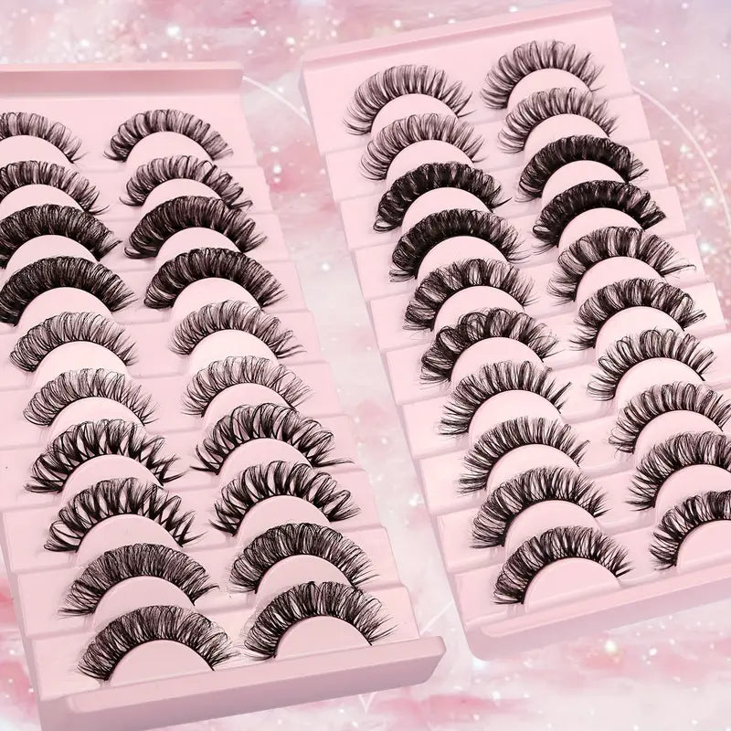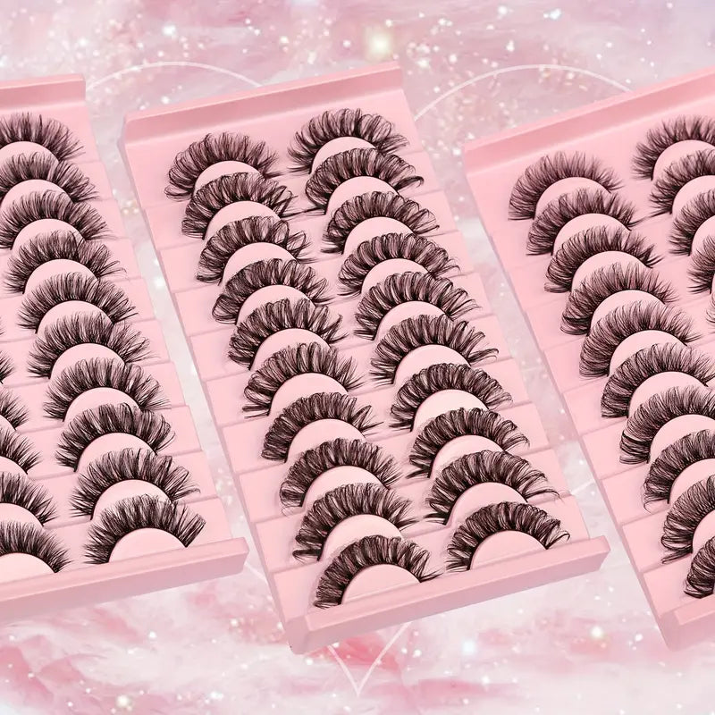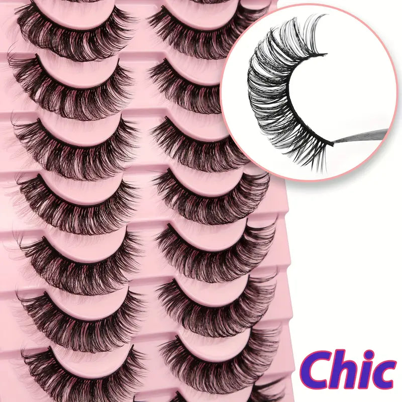 Faux Cils Naturels 3D Effet Croisé – Lot de 10 Paires Ultra Légères et Réutilisables pour un Regard Intense et Glamour
