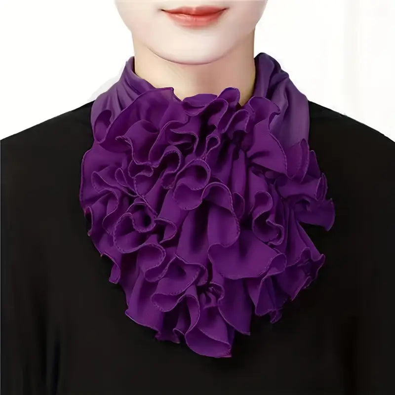 Faux col femme plastron élégant – Col amovible à volants en tissu violet pour chemisier et pull