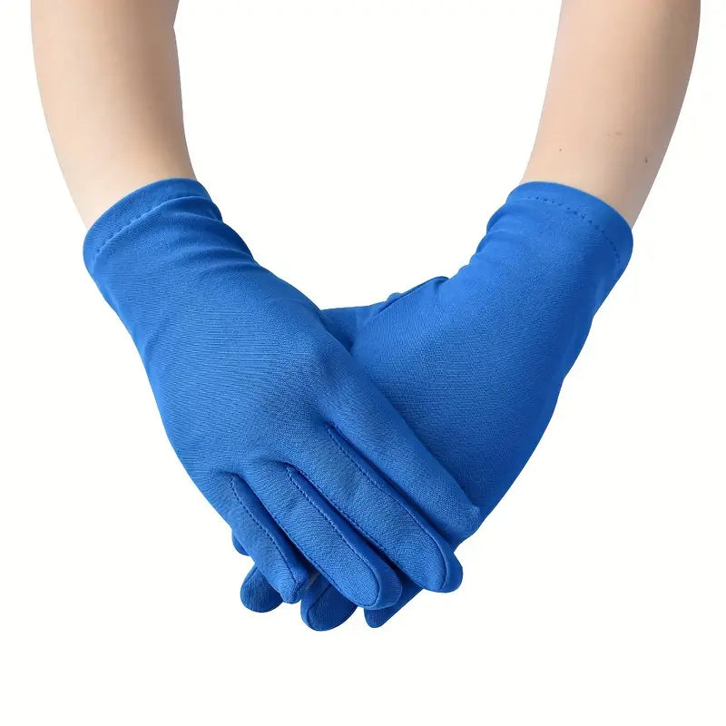 Gants femme élégants en tissu bleu – Accessoire chic pour soirées, cérémonies et spectacles