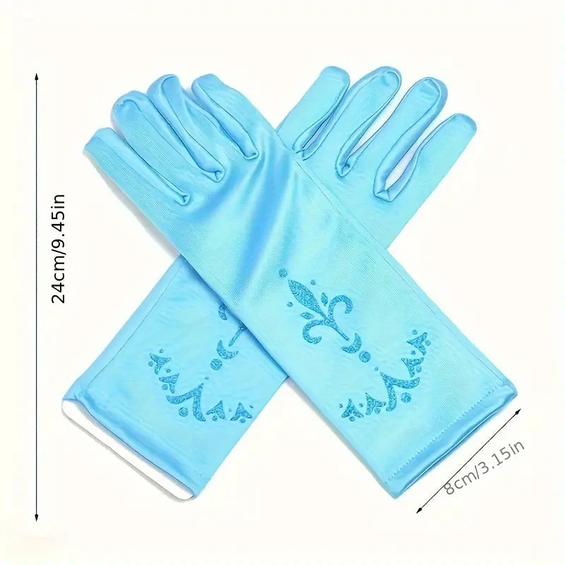 Gants longs femme satin rose avec motifs bleus – Accessoires élégants pour soirées, mariages et déguisements