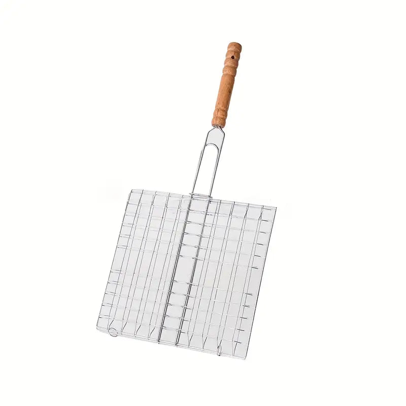 Grille barbecue pliable avec manche – Panier de cuisson en acier inoxydable pour viande, poisson et légumes