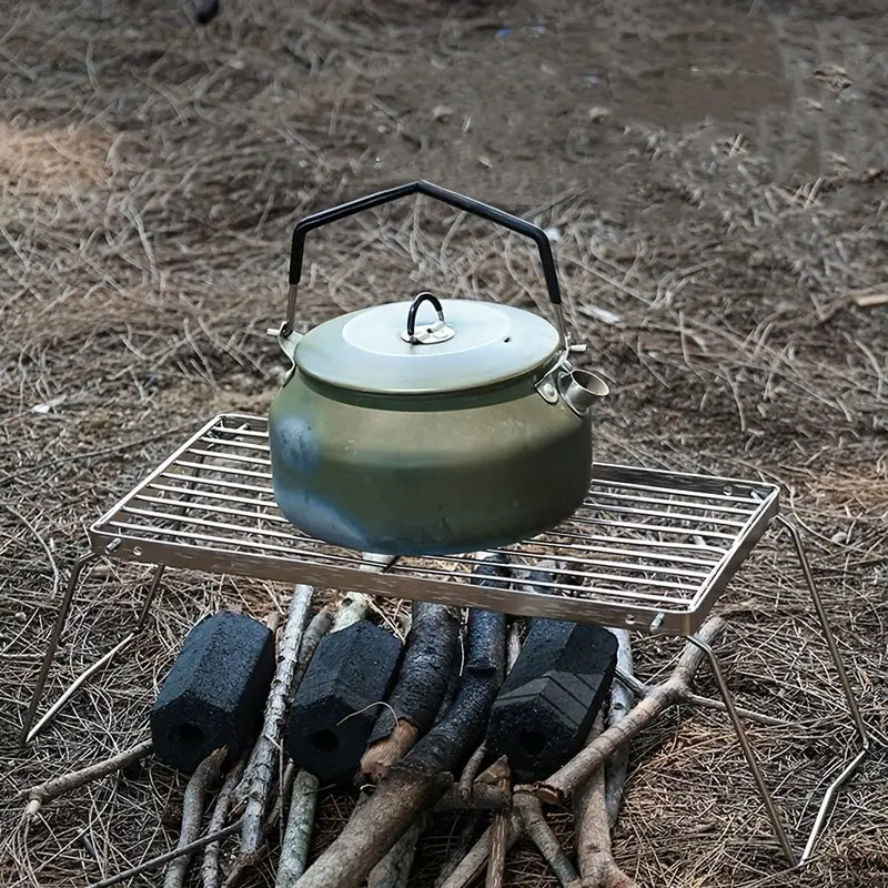 - Polyvalence: fonctionne sur feu de camp, brasero, réchaud bois/alcool; parfait comme support de casserole.