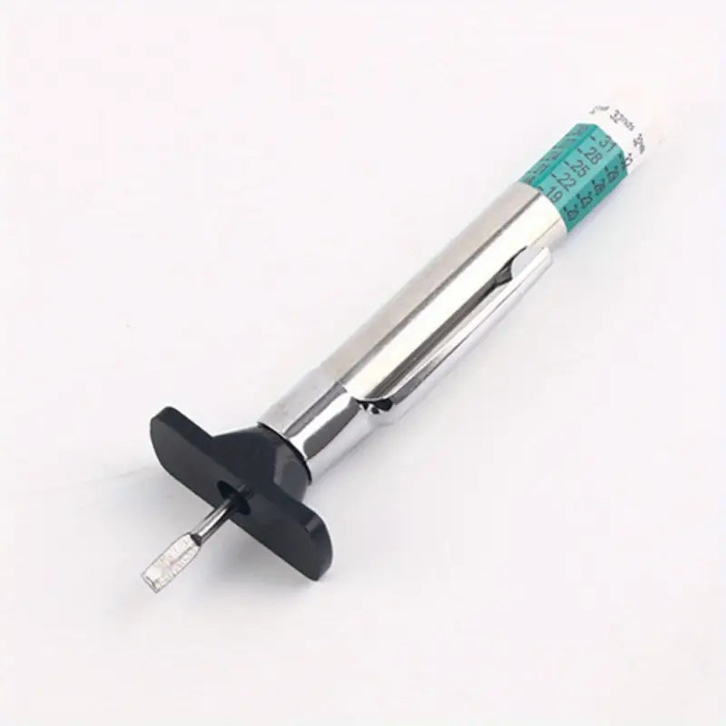 Contrôlez l’état de vos pneus en quelques secondes avec cette jauge de profondeur de pneu au format stylo. Sa base large et plane assure une mesure stable, tandis que la tige coulissante affiche une lecture instantanée sur une graduation en millimètres (et 1/32e). Idéale pour voitures, motos, utilitaires et 4x4, c’est l’outil de mesure précis indispensable pour un contrôle d’usure fiable.