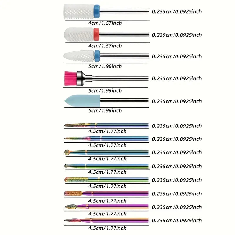 Kit Embouts de Fraise pour Ongles – 13 Pièces Professionnelles en Céramique et Carbure pour Manucure Électrique