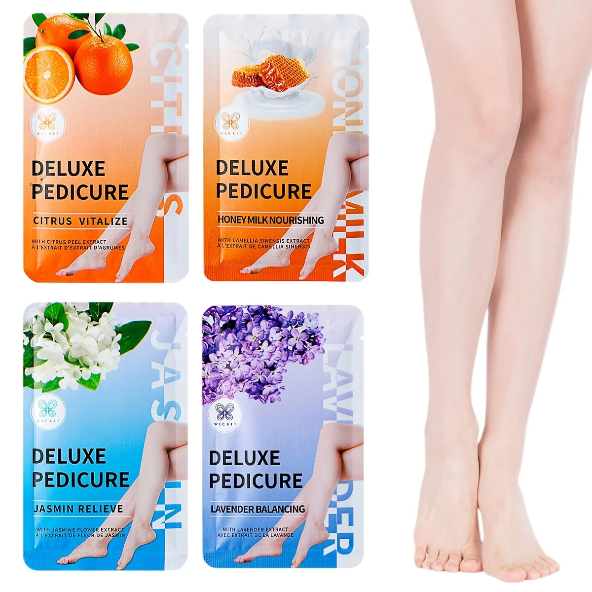 Kit Masques Pédicure Deluxe – 4 Soins Pieds Hydratants aux Extraits Naturels (Lavande, Miel, Jasmin, Agrumes)
