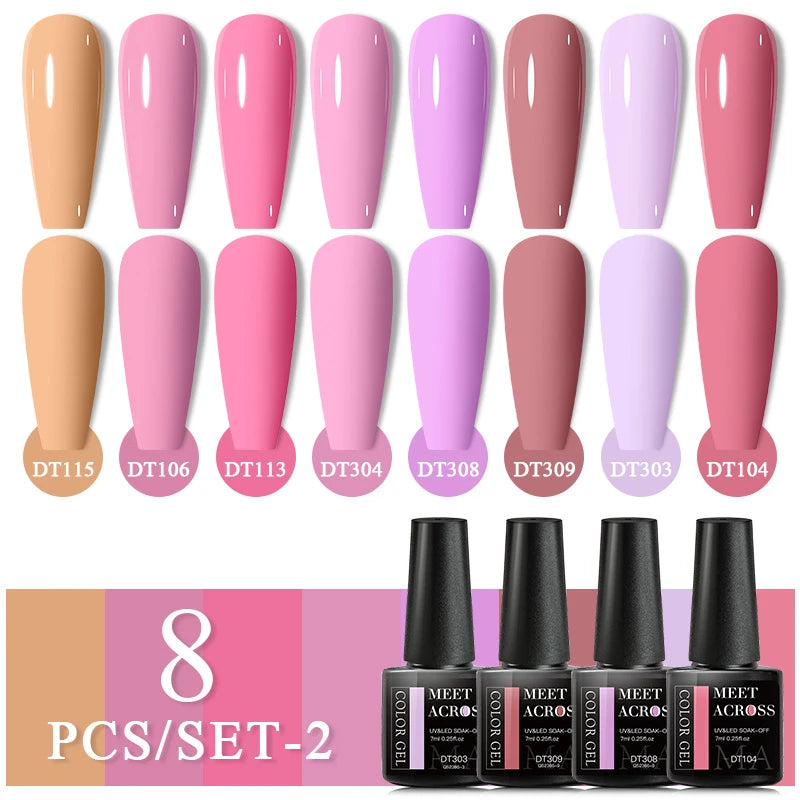 Kit Vernis Semi-Permanent Nude & multicolore – 8 Couleurs Tendances Gel UV LED MEET ACROSS