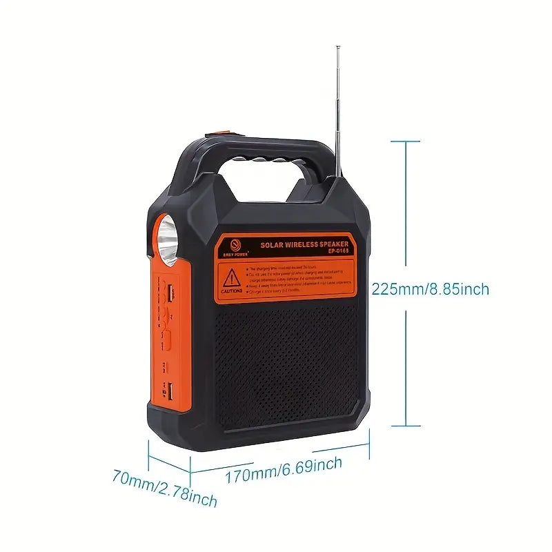Emportez un éclairage LED, une radio FM et une enceinte Bluetooth dans un seul équipement ultra‑pratique. Cette lampe solaire portable offre son, lumière et informations partout: bivouac, jardin, atelier ou kit d’urgence. Sa poignée intégrée facilite le transport, tandis que l’antenne télescopique optimise la réception des stations locales.