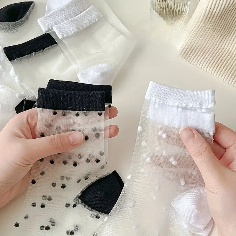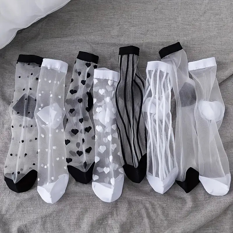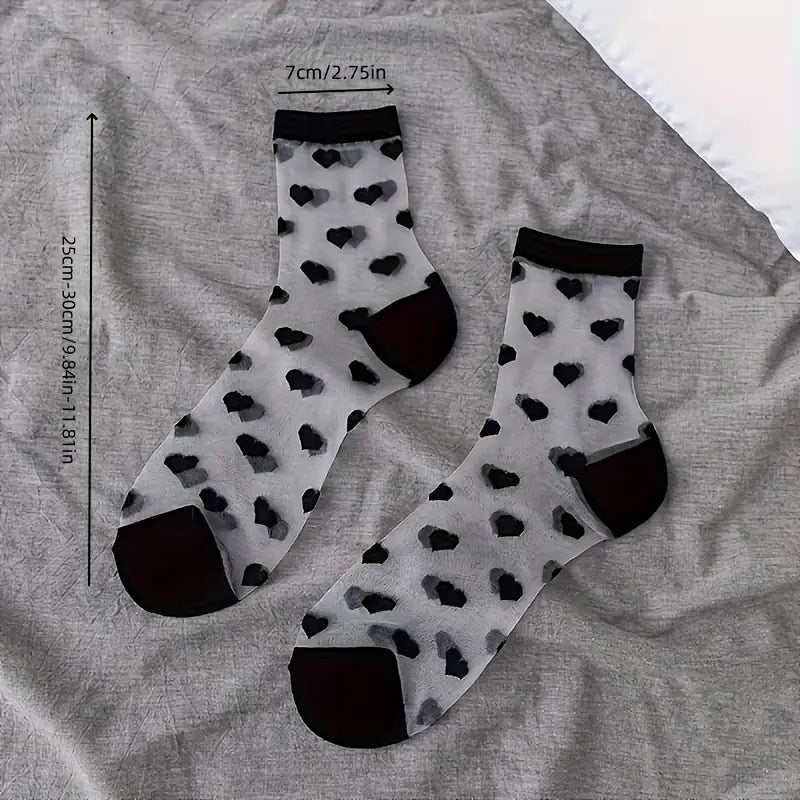 Chaussettes transparentes femme – motifs cœurs & rayures, élégantes et respirantes