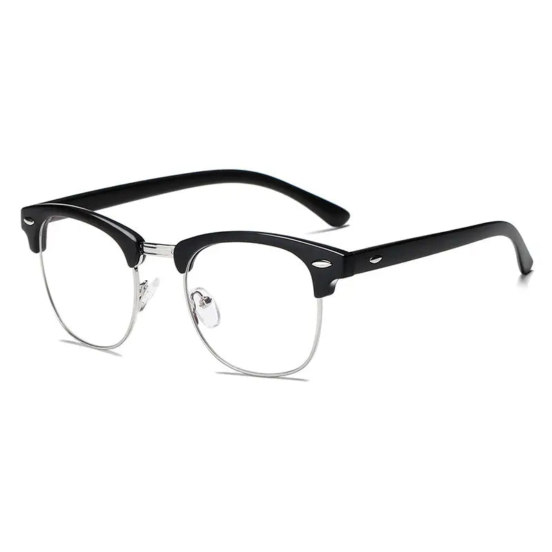 Lunettes de vue femme rétro – Monture demi-cerclée noire et argent élégante