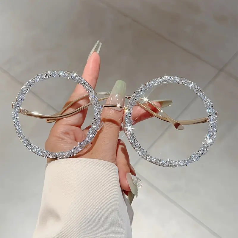 Lunettes rondes femme fantaisie avec strass scintillants – accessoire mode lumineux