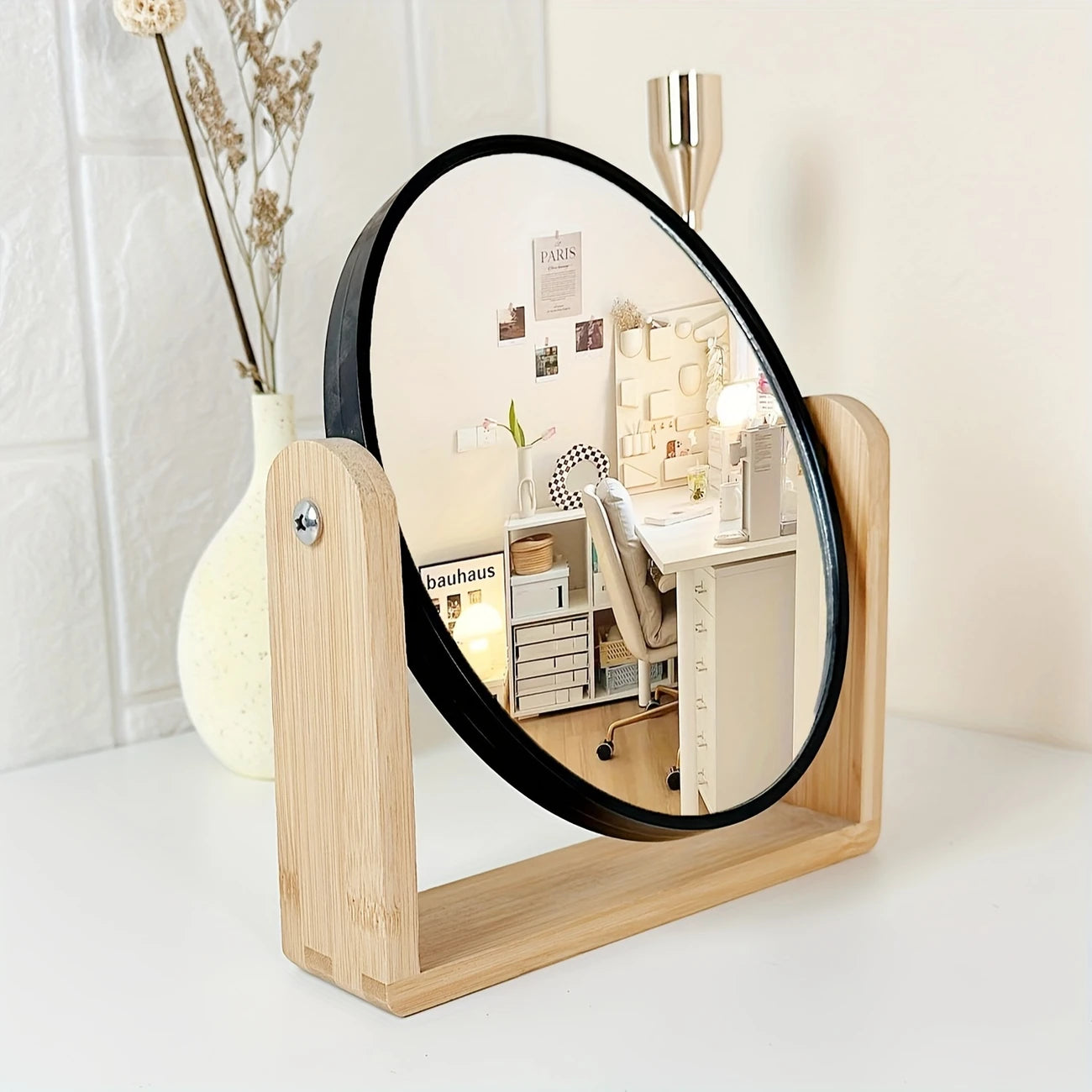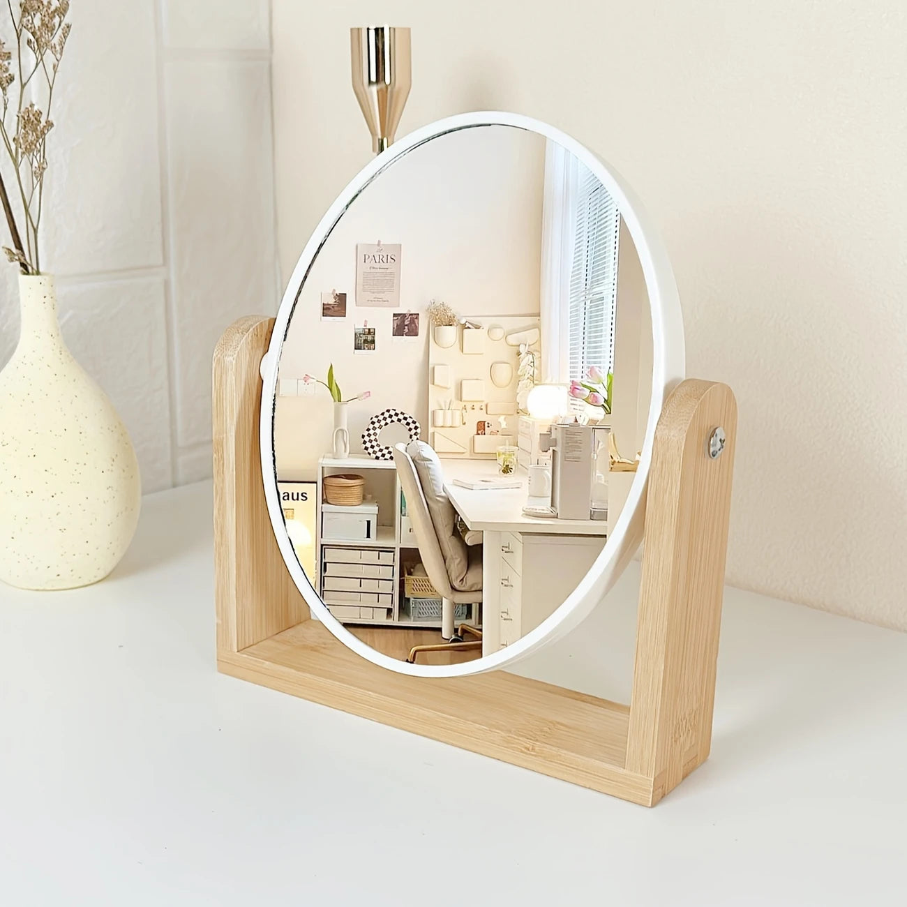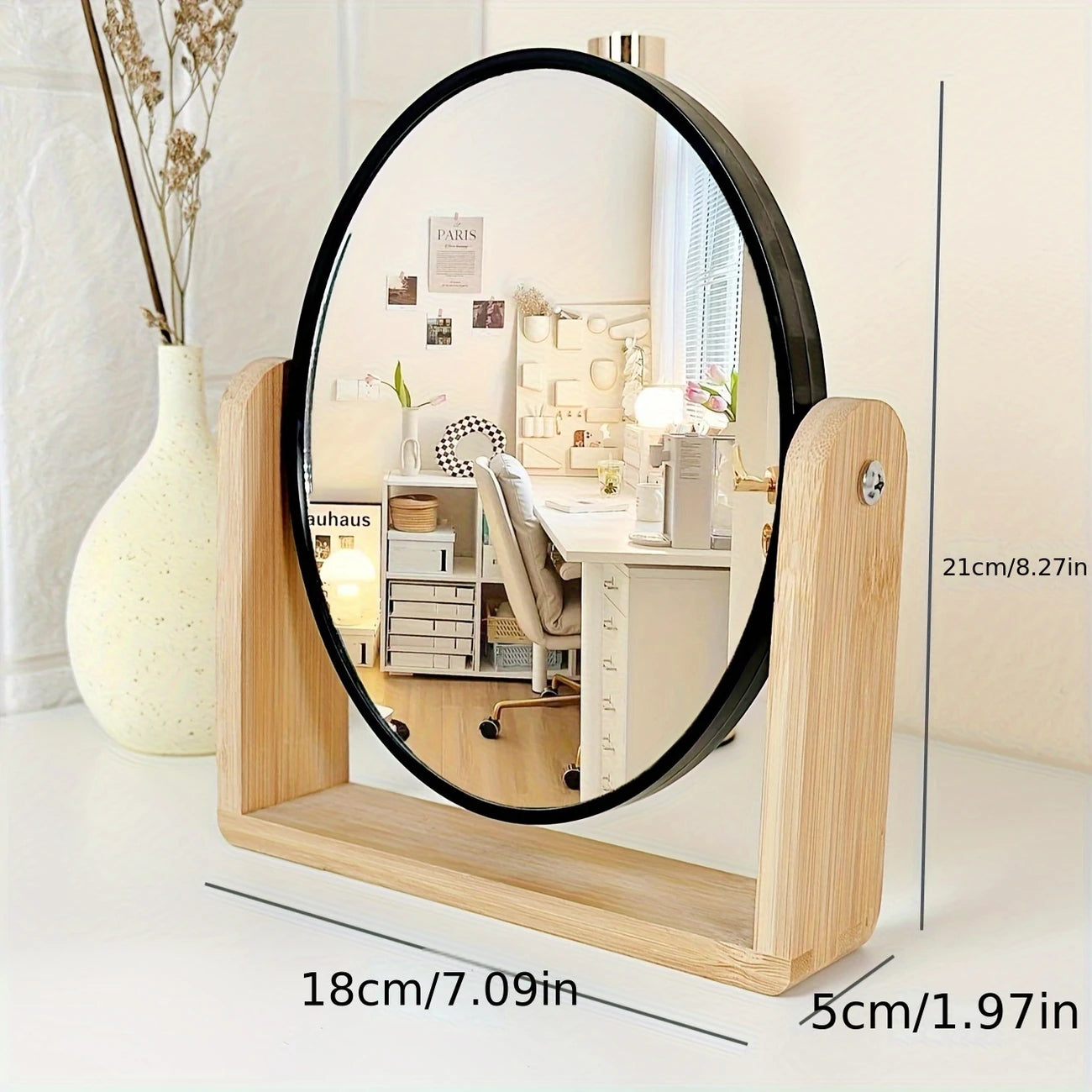 Miroir de Maquillage de Table Rotatif – Design Moderne avec Cadre Bois et Format Compact 21x18 cm