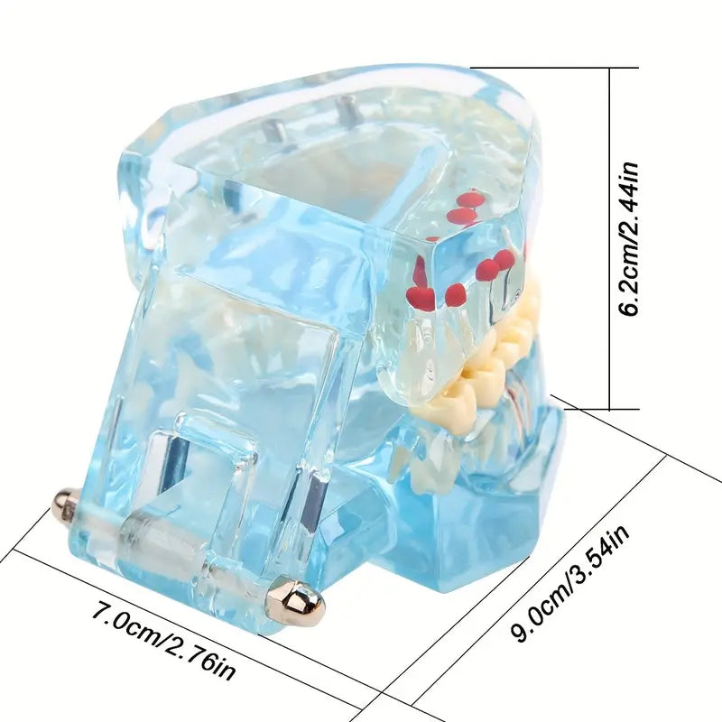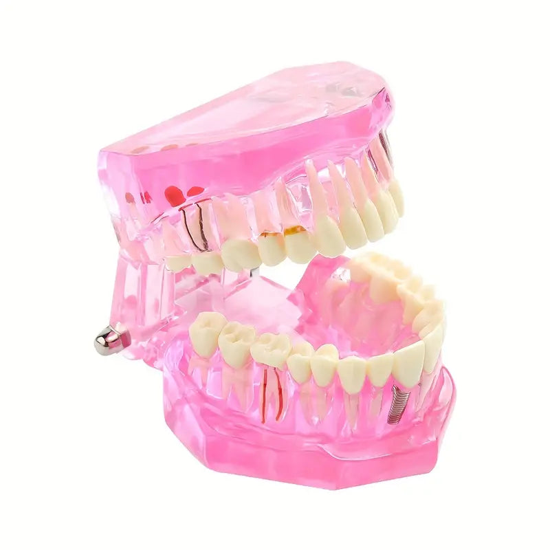 Présentez clairement chaque étape d’un traitement avec ce modèle de mâchoire articulée, une maquette anatomique dentaire précise conçue pour la formation dentaire et la démonstration patient. Les dents fidèlement reproduites, dont certaines en coupe, exposent racines et pulpe, tandis qu’un implant dentaire vissé sur l’arcade inférieure illustre les options prothétiques. La charnière permet d’ouvrir/fermer la bouche pour montrer la mastication, le brossage des dents et le fil dentaire, facilitant l’éducation à l’hygiène bucco-dentaire.