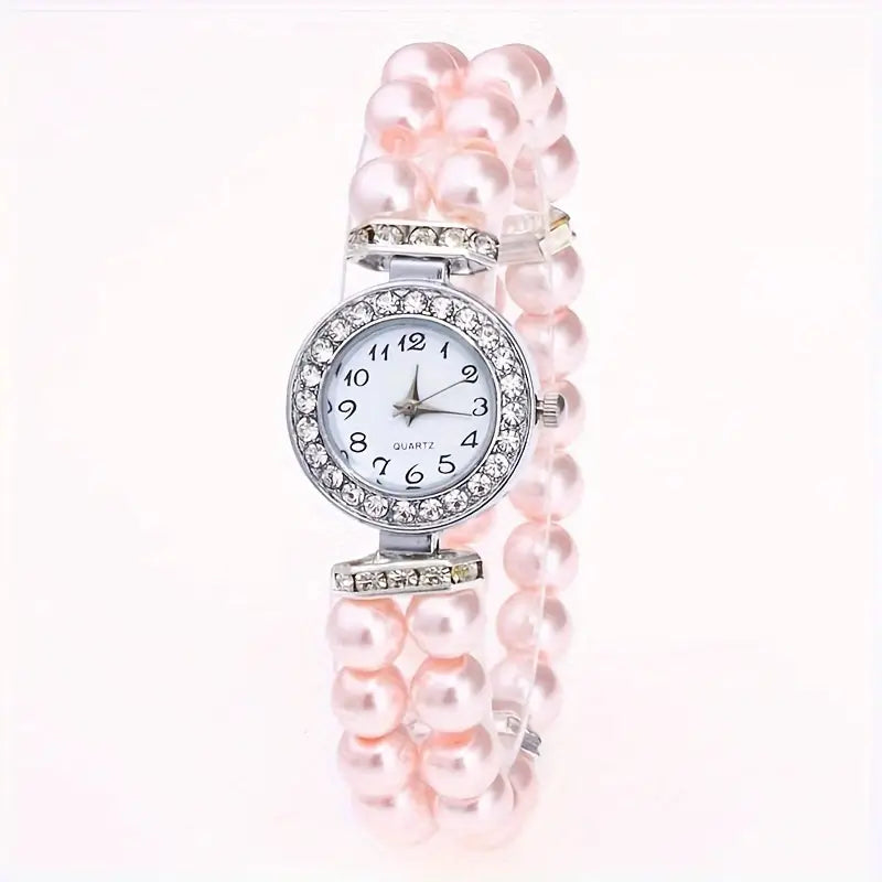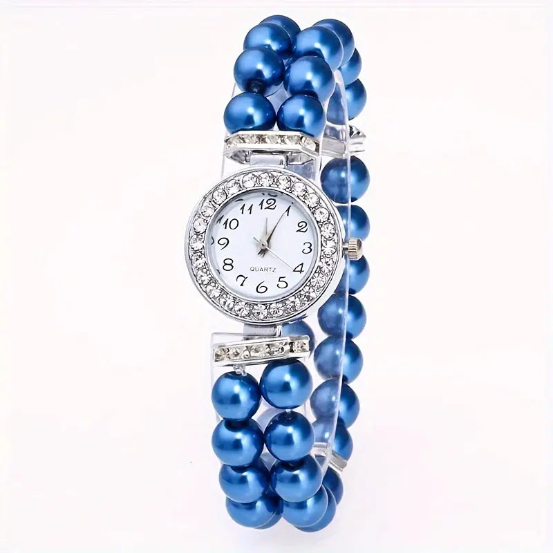 Montre bijou femme avec bracelet perles – quartz et strass