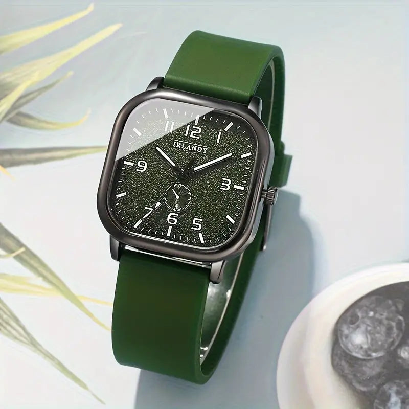 Succombez au charme de cette montre femme au cadran carré, aux angles adoucis et à la finition métallique soignée. Son cadran texturé, ponctué de chiffres arabes (12/3/6/9) et d’index minutes, offre une lisibilité parfaite d’un simple coup d’œil. Le sous-cadran petite seconde à 6 h signe un véritable esprit horloger. Aiguilles fines, lunette discrète et logo IRLANDY complètent un design moderne et élégant.