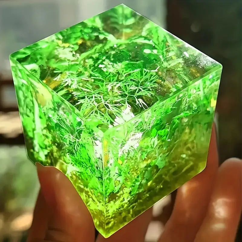 Composez un cube “terrarium” avec inclusions botaniques, un presse‑papiers minimaliste ou des bijoux modulaires. La transparence met en valeur l’effet 3D et chaque détail de vos pièces.