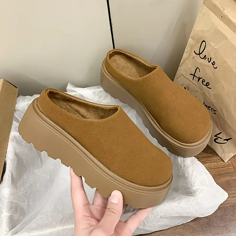 La semelle épaisse crantée amortit chaque pas et apporte une hauteur maîtrisée sans sacrifier l’équilibre. Son profil antidérapant réduit les glissades sur sols lisses, pour marcher en confiance par temps frais ou humide. Un atout idéal pour un usage intérieur/extérieur au quotidien.