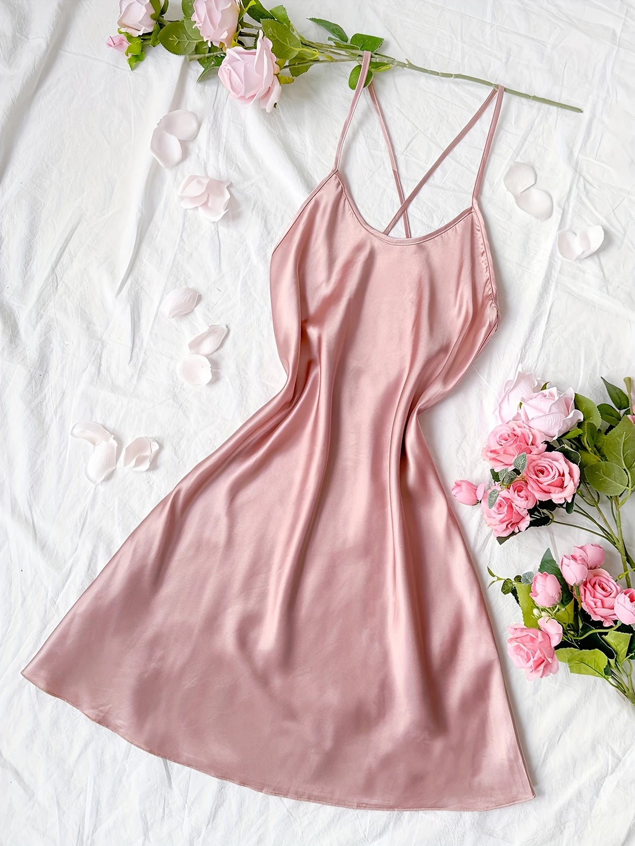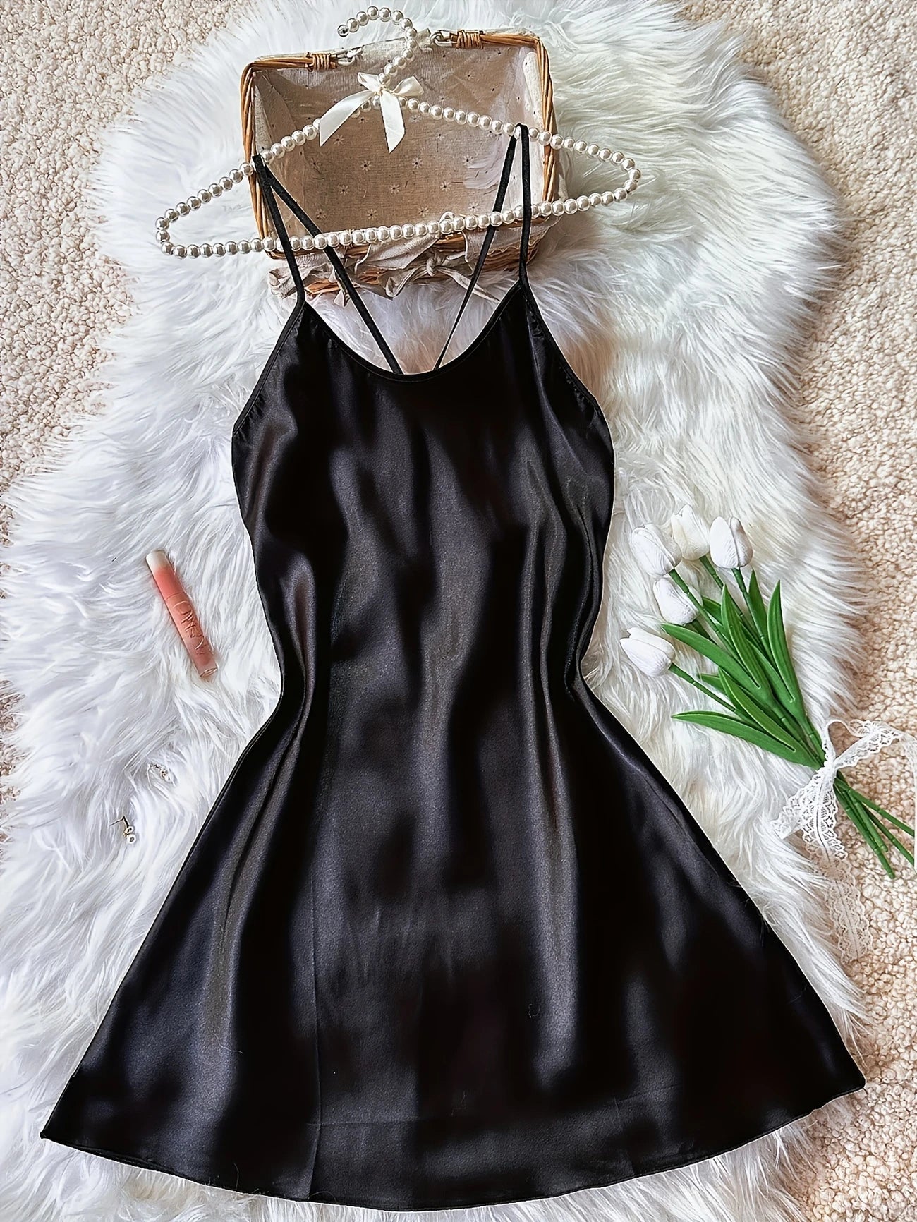 Nuisette Sexy Femme en Satin Lisse – Lingerie de Nuit Élégante à Bretelles Fines