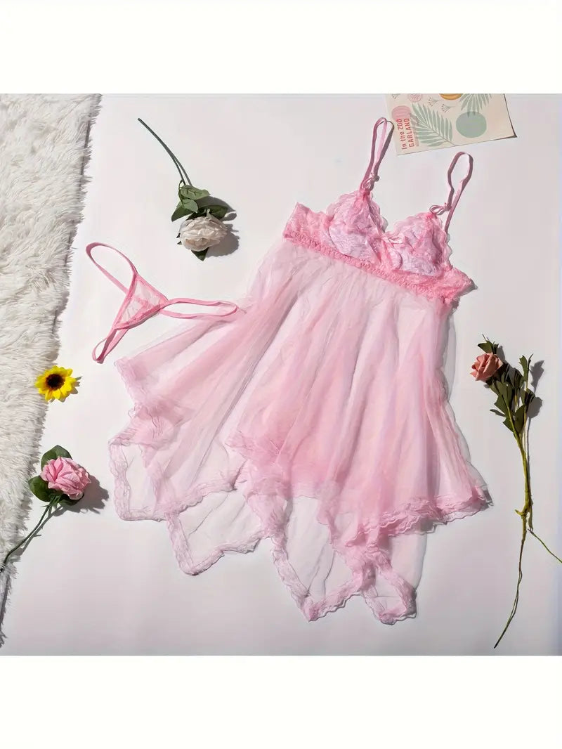 Nuisette Transparente Femme en Dentelle – Lingerie & Pyjama Sexy avec String Assorti