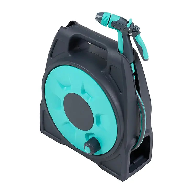 Dites adieu aux tuyaux qui s’emmêlent. Cet enrouleur de tuyau d’arrosage réunit rangement propre et arrosage confortable dans un seul bloc. Sa coque fermée protège le tuyau et garde votre espace net, tandis que la poignée intégrée assure une mobilité totale. Le rembobinage est rapide grâce à la molette frontale, et le pistolet multi‑jets ergonomique passe d’un jet doux à un jet puissant pour s’adapter à chaque usage.
