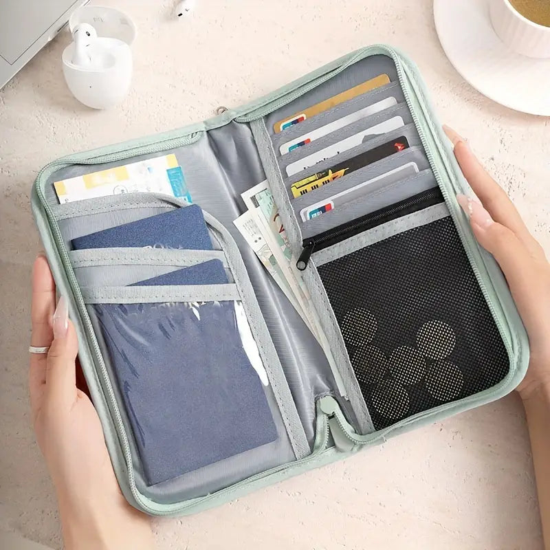 Conçu pour les déplacements en solo ou en famille, ce porte-passeport familial offre des compartiments dédiés, une fermeture zippée sur tout le pourtour et une dragonne amovible pour un transport sûr et confortable.