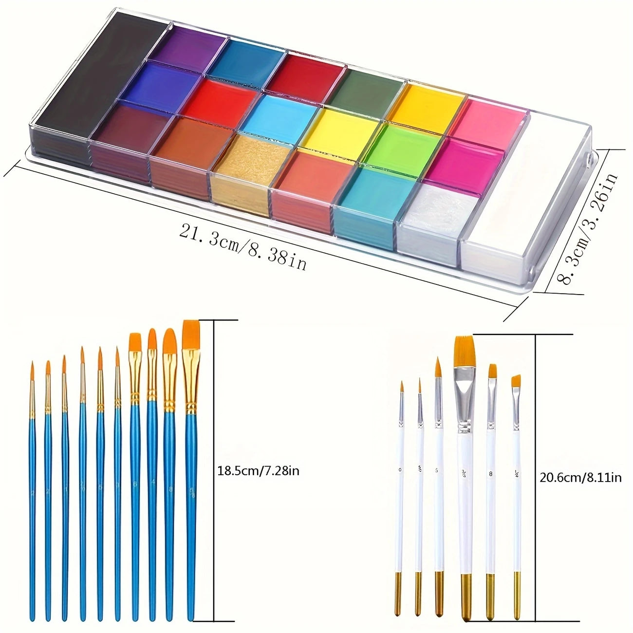 Palette Peinture Corporelle Artistique – 20 Couleurs Vives + 10 Pinceaux pour Maquillage Créatif
