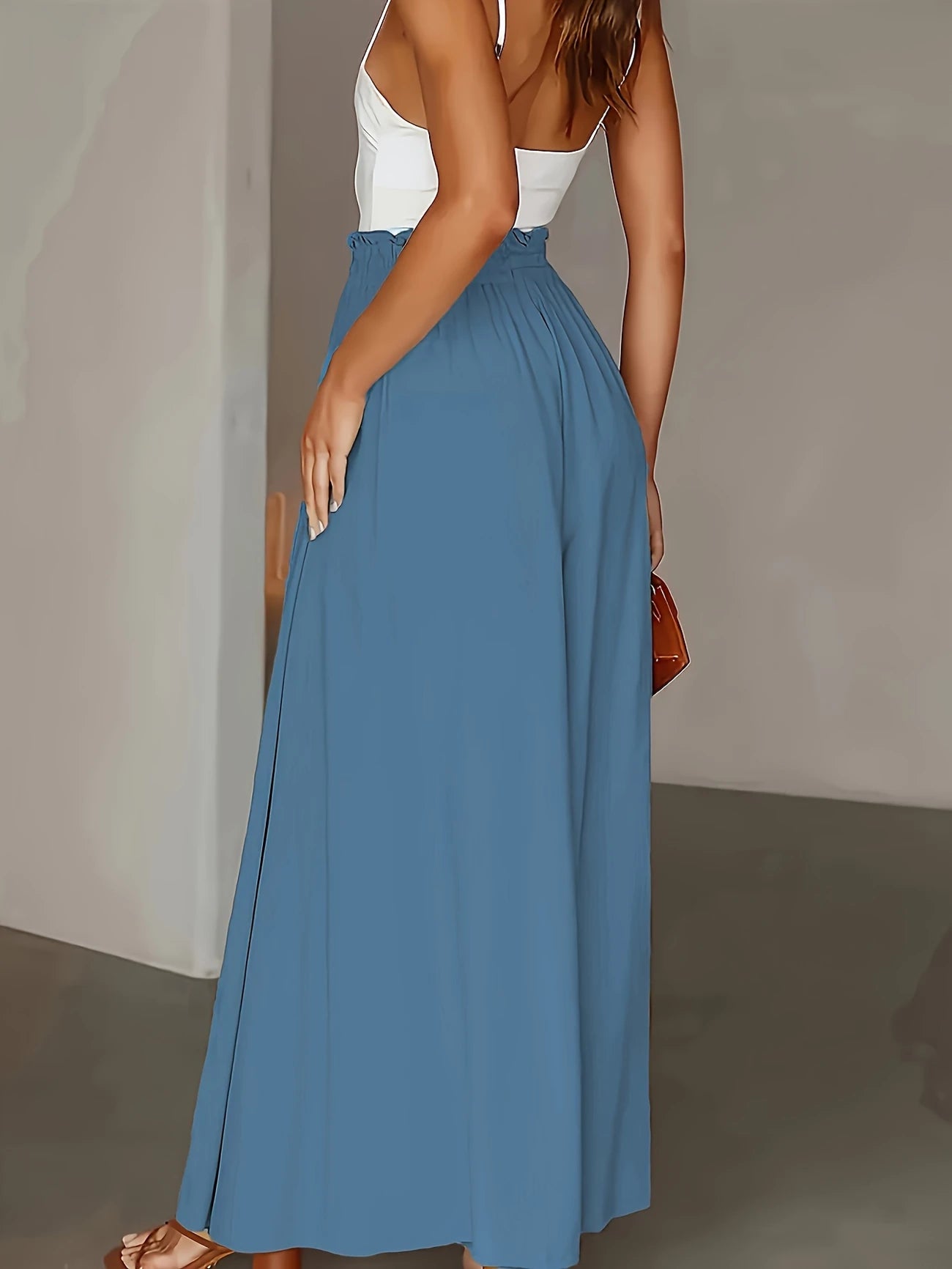 Alliance parfaite de style et de fonctionnalité, ce pantalon palazzo femme à taille haute paperbag est votre atout chic pour l’été: un pantalon été avec poches qui conjugue élégance, confort et polyvalence.