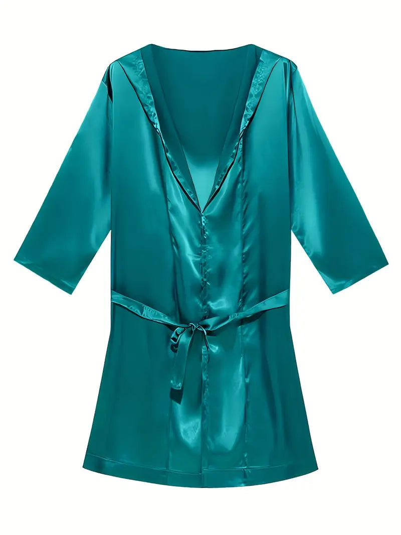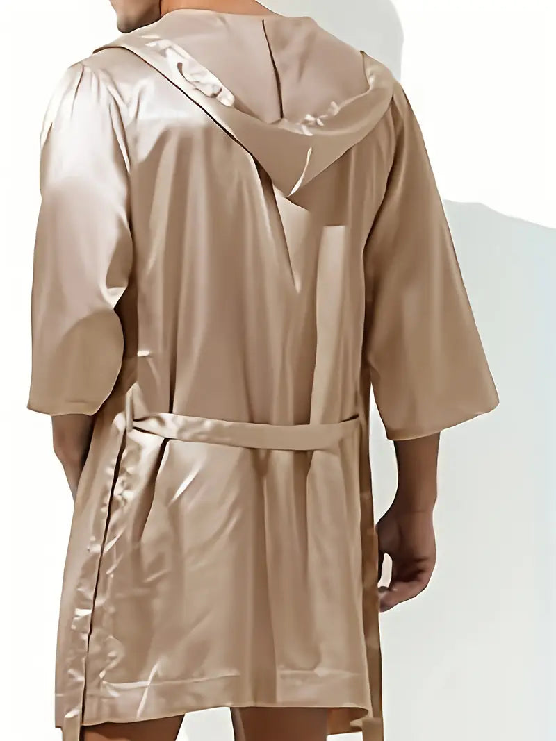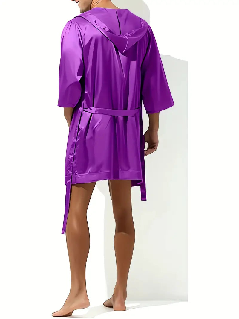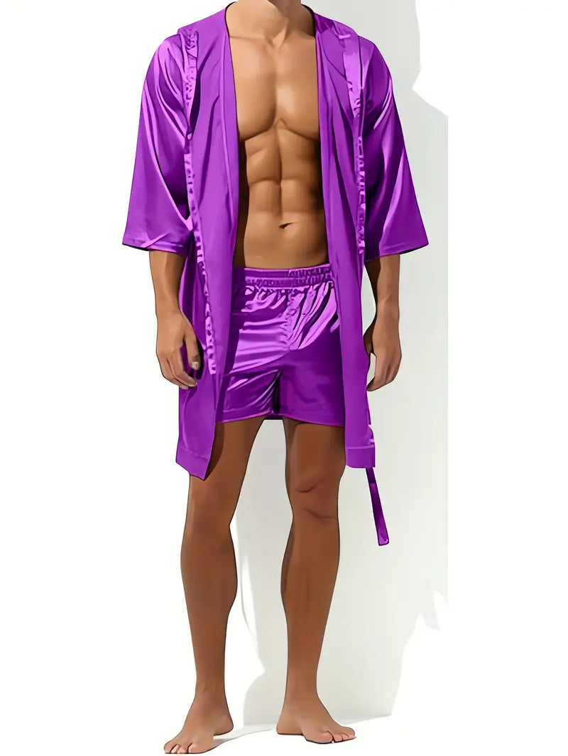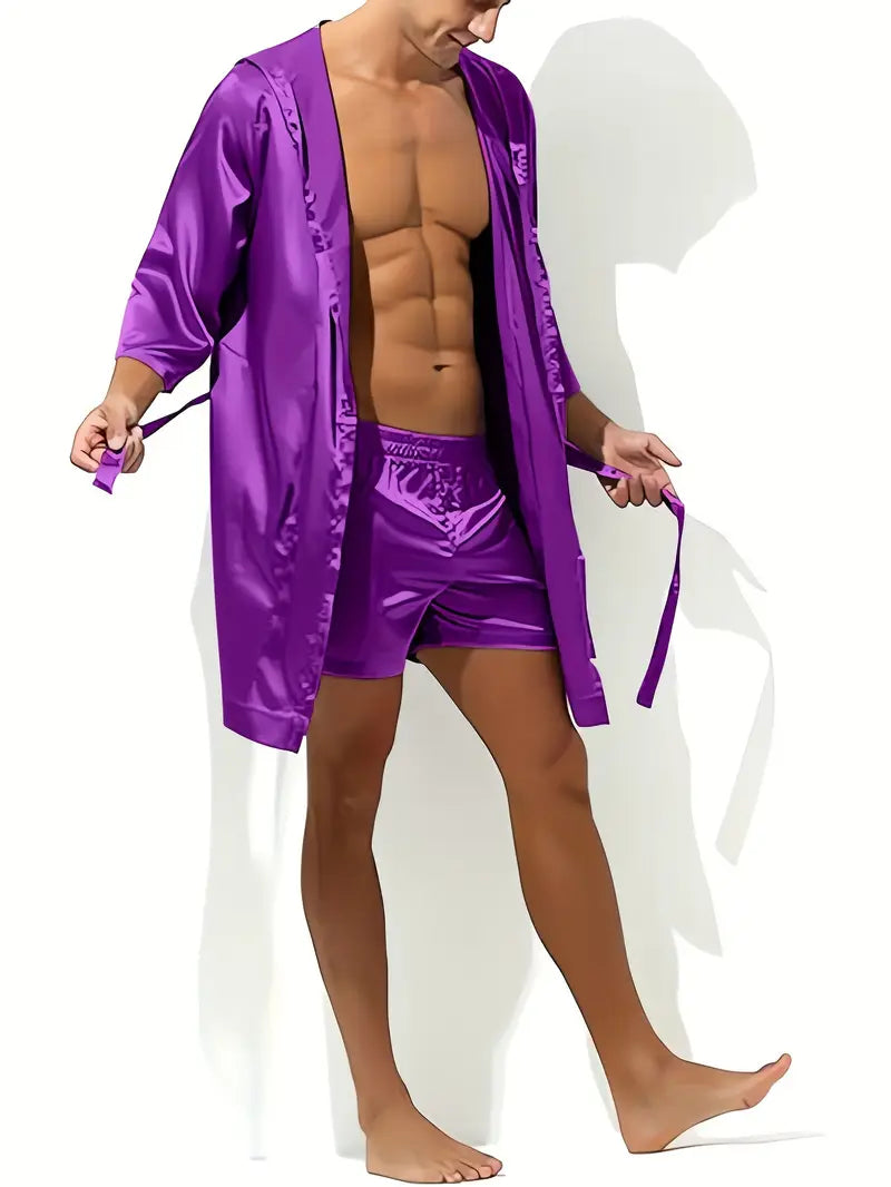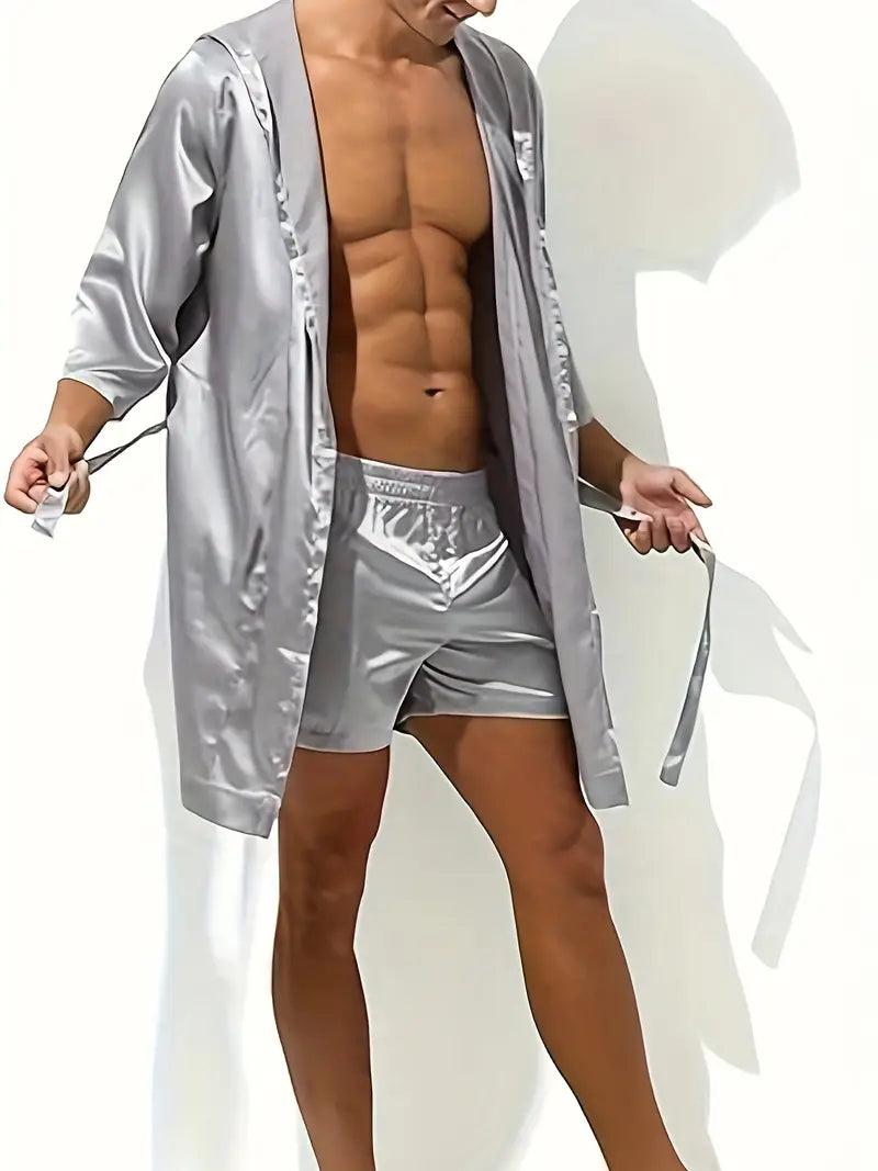 Peignoir sexy homme en satin – Kimono court brillant avec ceinture, Élégance & séduction