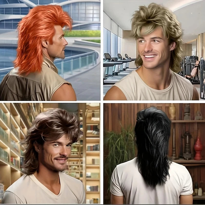 Perruque Homme Années 80 – Coupe Mulet Volumineuse pour Déguisement & Look Rétro