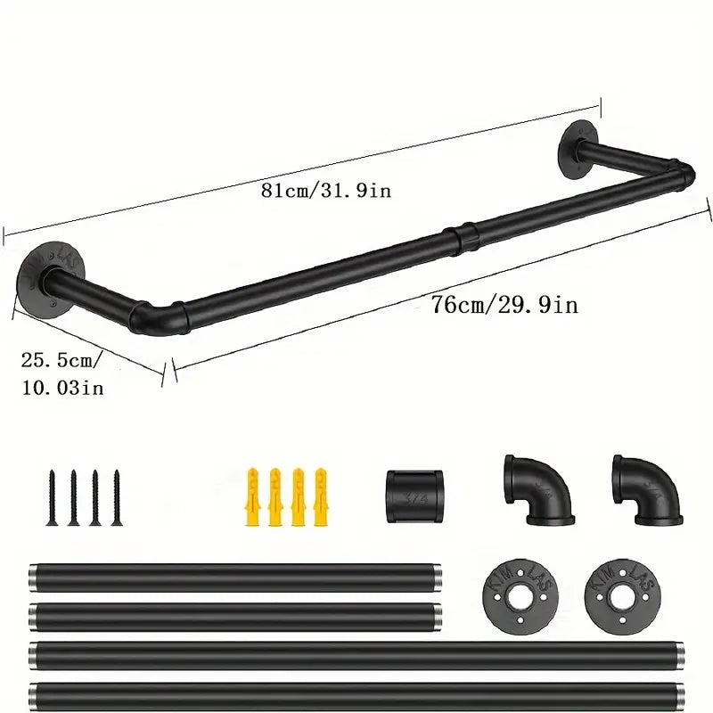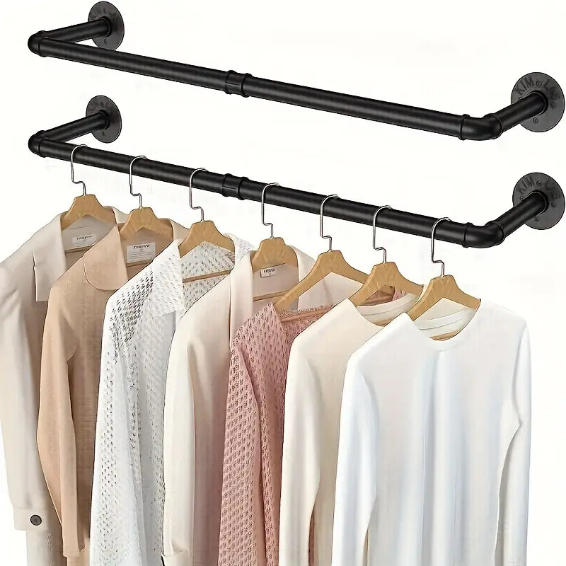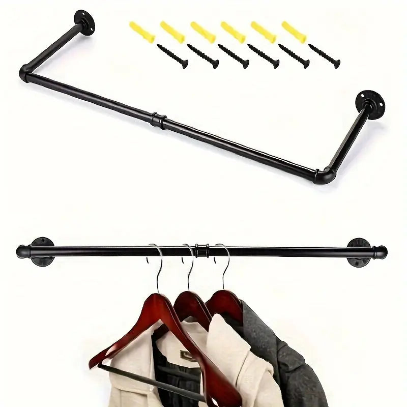 Transformez un mur en dressing élégant avec un portant mural industriel conçu pour optimiser l’espace et sublimer vos tenues. Inspirée de la tuyauterie, cette barre de suspension pour vêtements offre un rangement vertical pratique, idéal pour vestes, chemises et manteaux. Vos pièces restent visibles, aérées et prêtes à porter, pour un quotidien fluide.