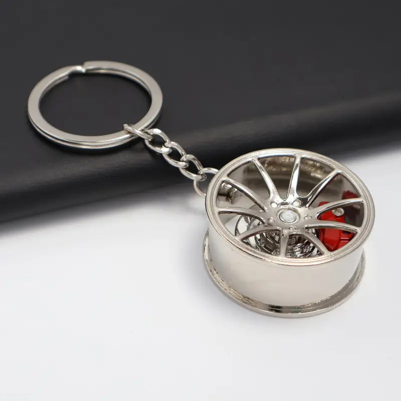 Porte-clés jante voiture avec étrier de frein rouge – Breloque métal sportive homme