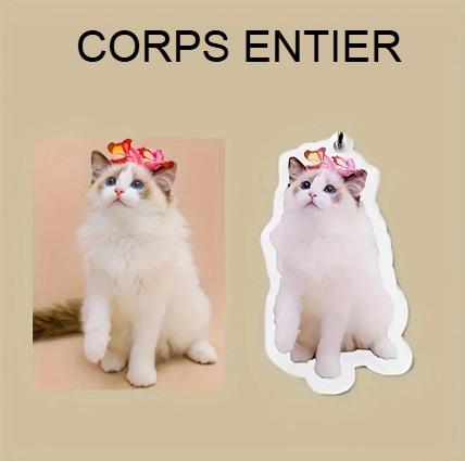 - Découpe à la forme: silhouette de la tête ou du buste pour un effet “pet face”.