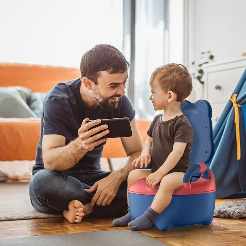Tirez, videz, rincez: le bac intérieur se retire par l’avant comme un tiroir pour un entretien express et moins d’odeurs. La forme large assure une bonne stabilité au sol et des déplacements faciles. Idéal pour démarrer la propreté à la maison et habituer l’enfant avant un réducteur de WC.
