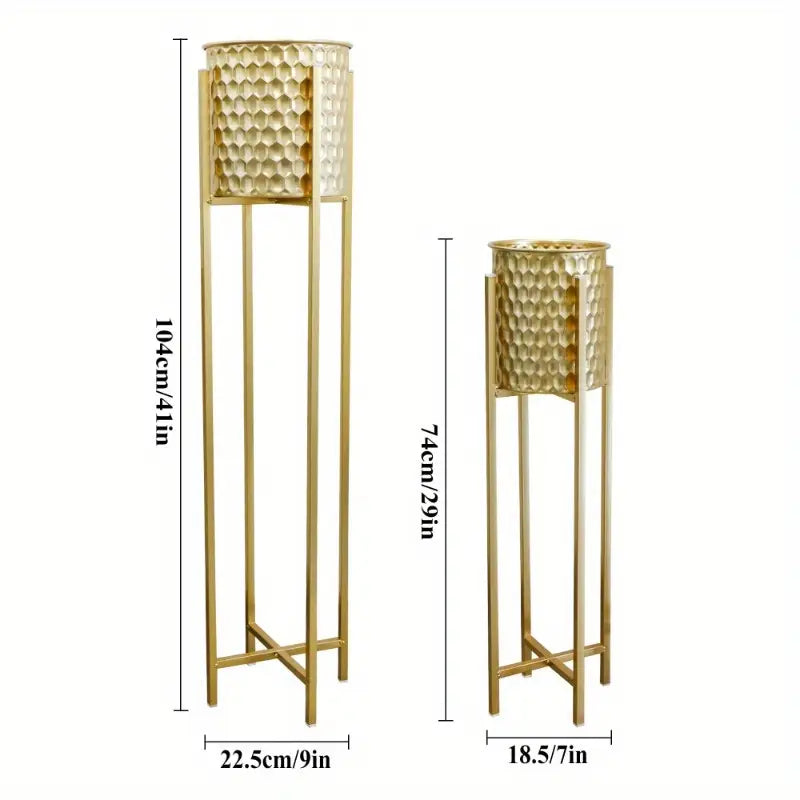 Pots de fleurs dorés sur pieds – Jardinières décoratives élégantes pour intérieur moderne et plantes vertes
