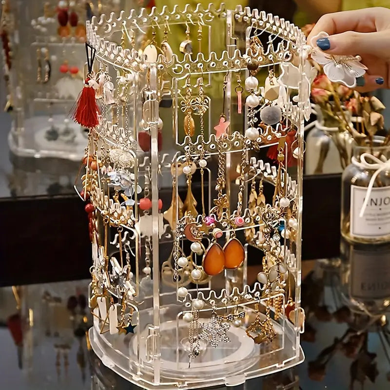 Présentoir à boucles d’oreilles rotatif en acrylique – Organisateur transparent de bijoux élégant et pratique
