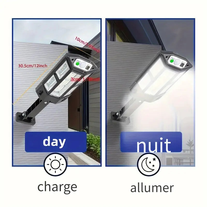 Projecteur Solaire LED Extérieur avec Détecteur de Mouvement – Éclairage de Sécurité Étanche pour Jardin, Allée et Façade