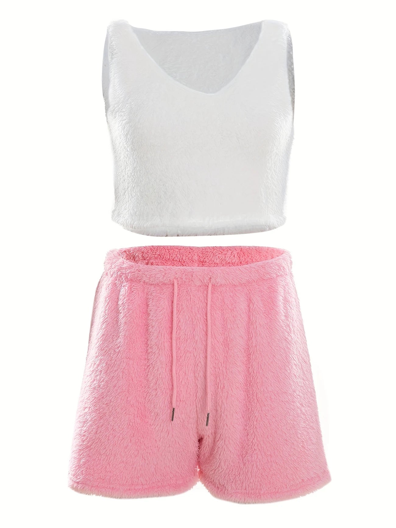 Adoptez un pyjama cocooning qui allie style et bien-être. Le gilet joue la carte du gilet moelleux à superposer, la brassière douce maintient avec légèreté, et le short taille haute doudou flatte la silhouette. Idéal en set d’intérieur peluche, pour soirées cocooning, voyages et idées cadeaux.