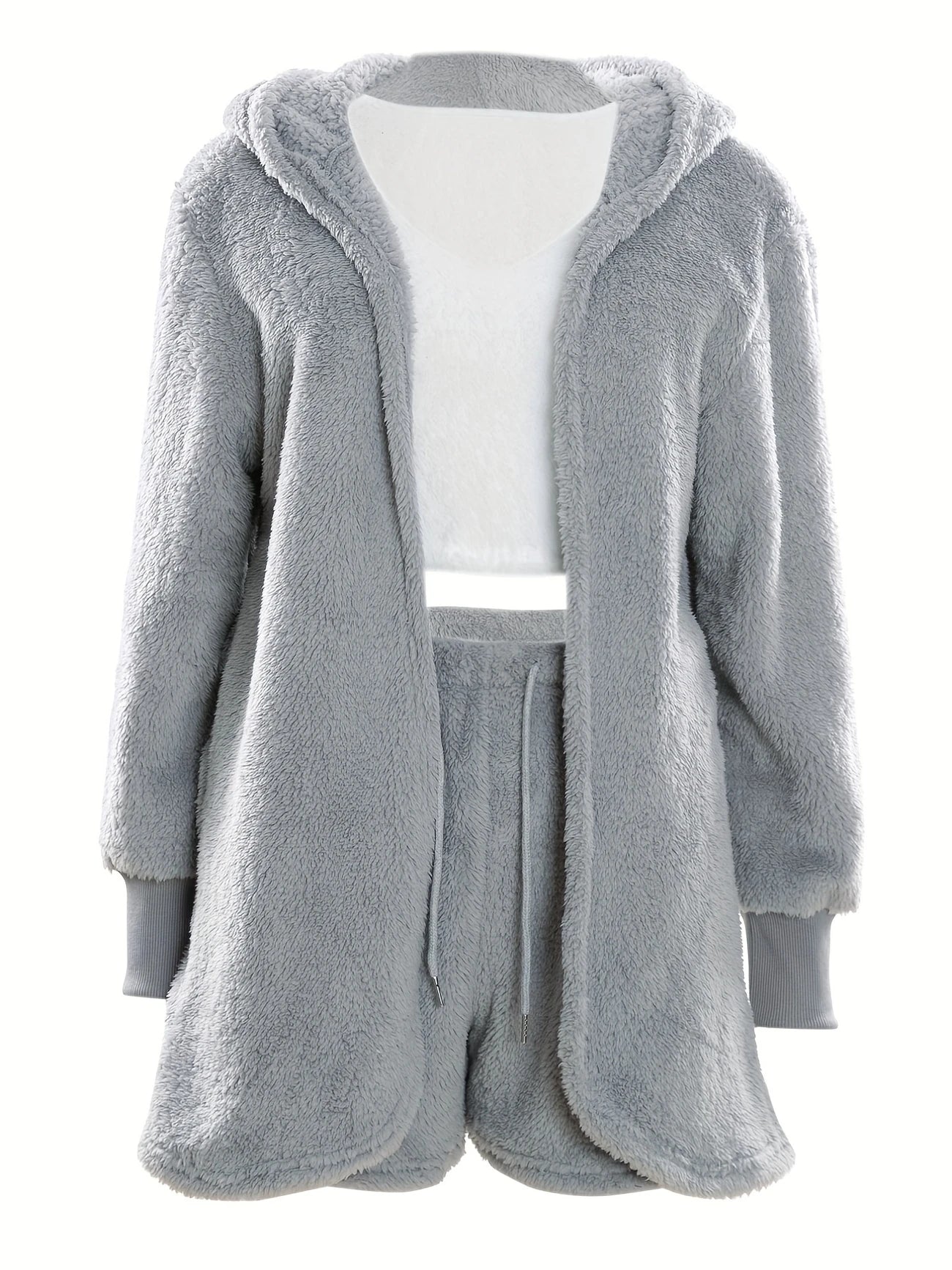 Pyjama Femme 3 Pièces Doudou Ultra Doux – Gilet, Débardeur & Short Cocooning pour Hiver