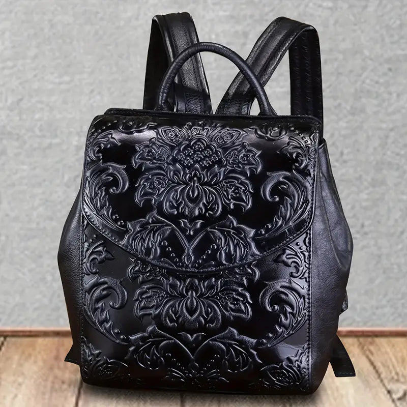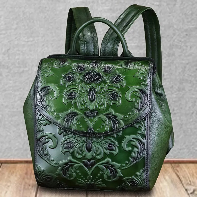 Sac à dos femme en cuir marron gravé – Élégant, vintage et artisanal