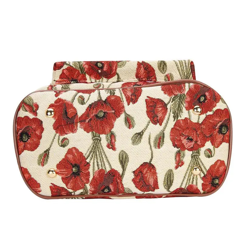 Les détails façon cuir et la quincaillerie métallique soulignent une silhouette élégante, tandis que le motif coquelicots offre une signature visuelle forte. Un accessoire de caractère qui traverse les saisons avec facilité.
