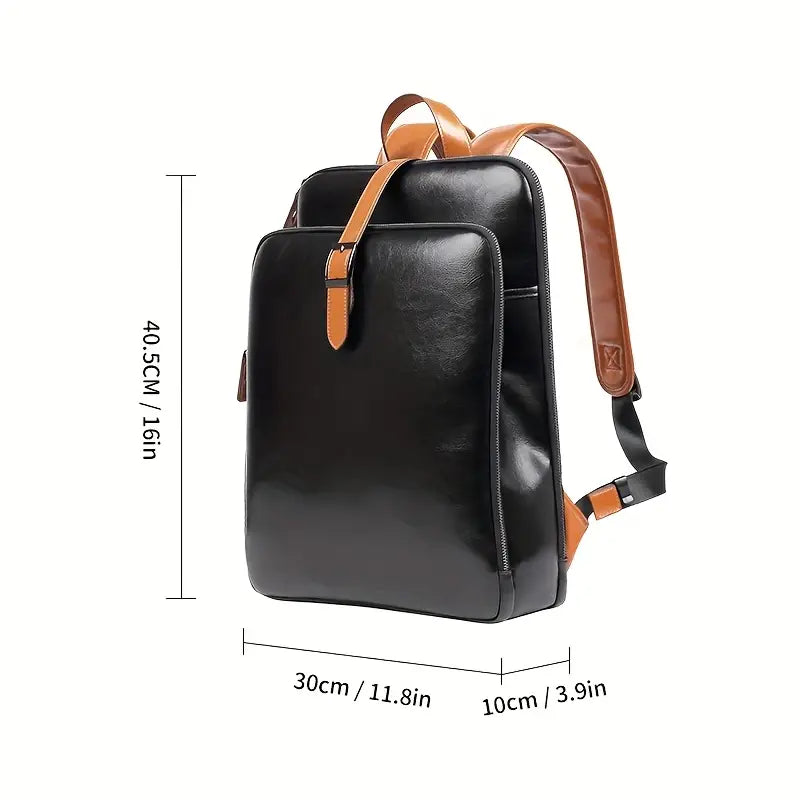 Sac à dos homme en cuir noir élégant – Design professionnel avec bretelles contrastées marron