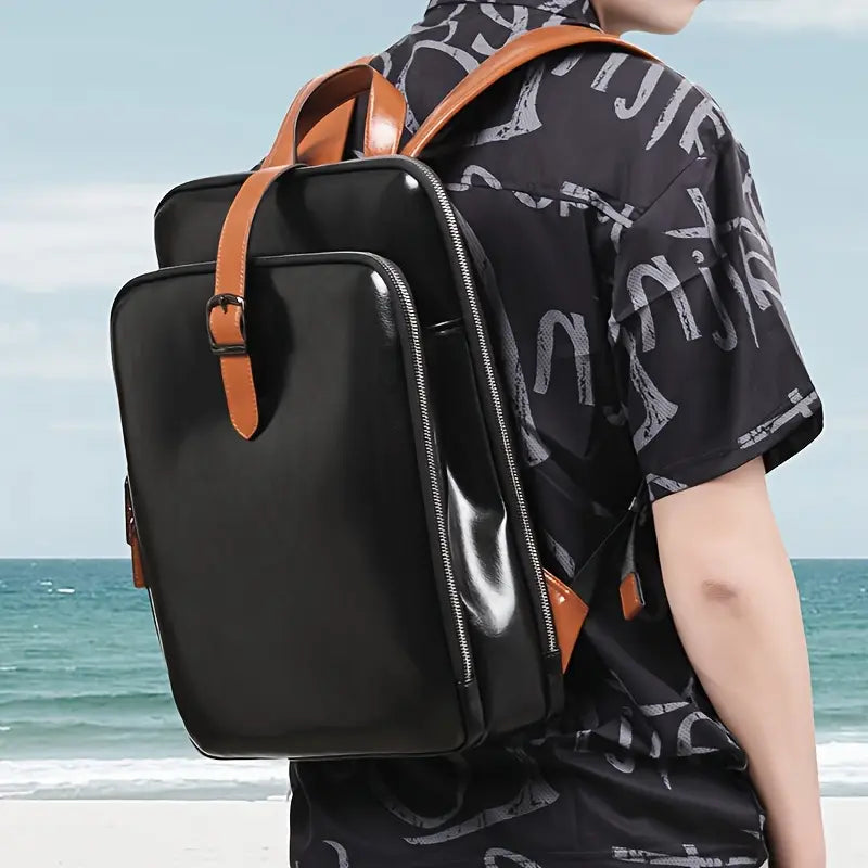 Affirmez une allure premium avec ce sac à dos homme au design minimaliste et à la silhouette rectangulaire. Sa structure semi‑rigide conserve parfaitement la tenue, tandis que le revêtement effet cuir et les bretelles contrastées signent une élégance professionnelle. L’ouverture zippée sur trois côtés offre un accès panoramique à vos affaires, et la poche frontale discrète garde l’essentiel à portée de main. Idéal pour le bureau, les déplacements urbains et les week‑ends légers.
