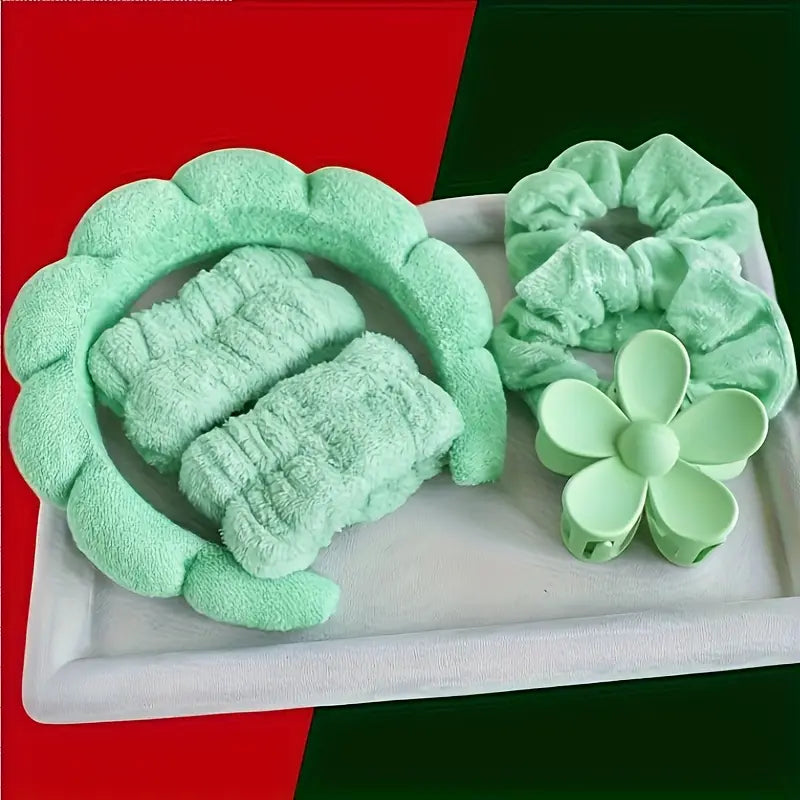 Set d’accessoires cheveux en tissu doux – Bandeau, chouchous et pince fleur assortis