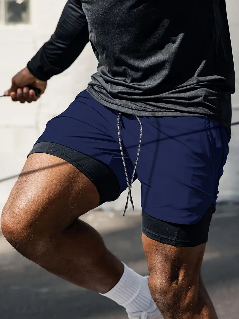 Short de sport homme 2 en 1 – Running, Fitness & Entraînement – Bleu avec cuissard intégré