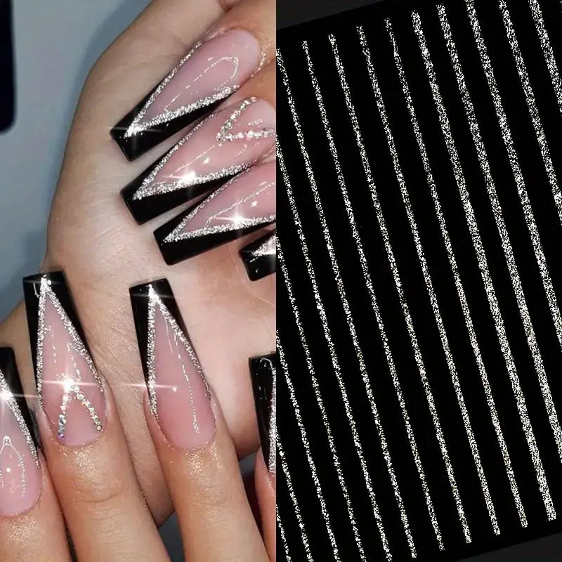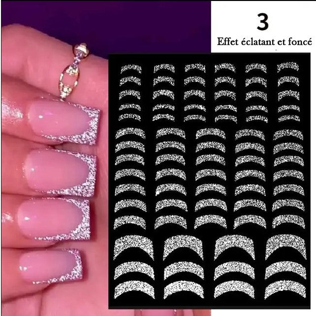Stickers French Manucure Pailletés – Autocollants Nail Art Effet Brillant pour Ongles Stylés